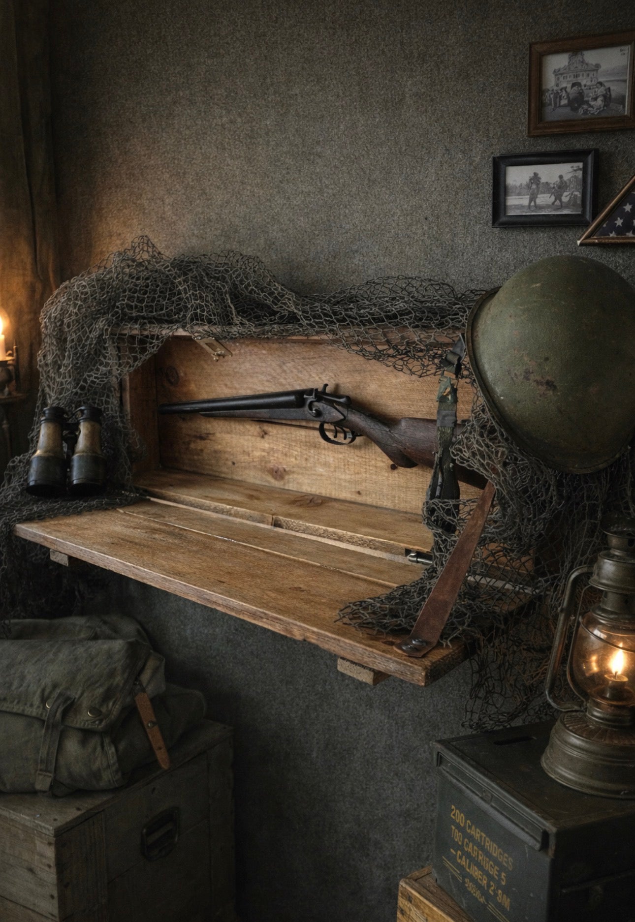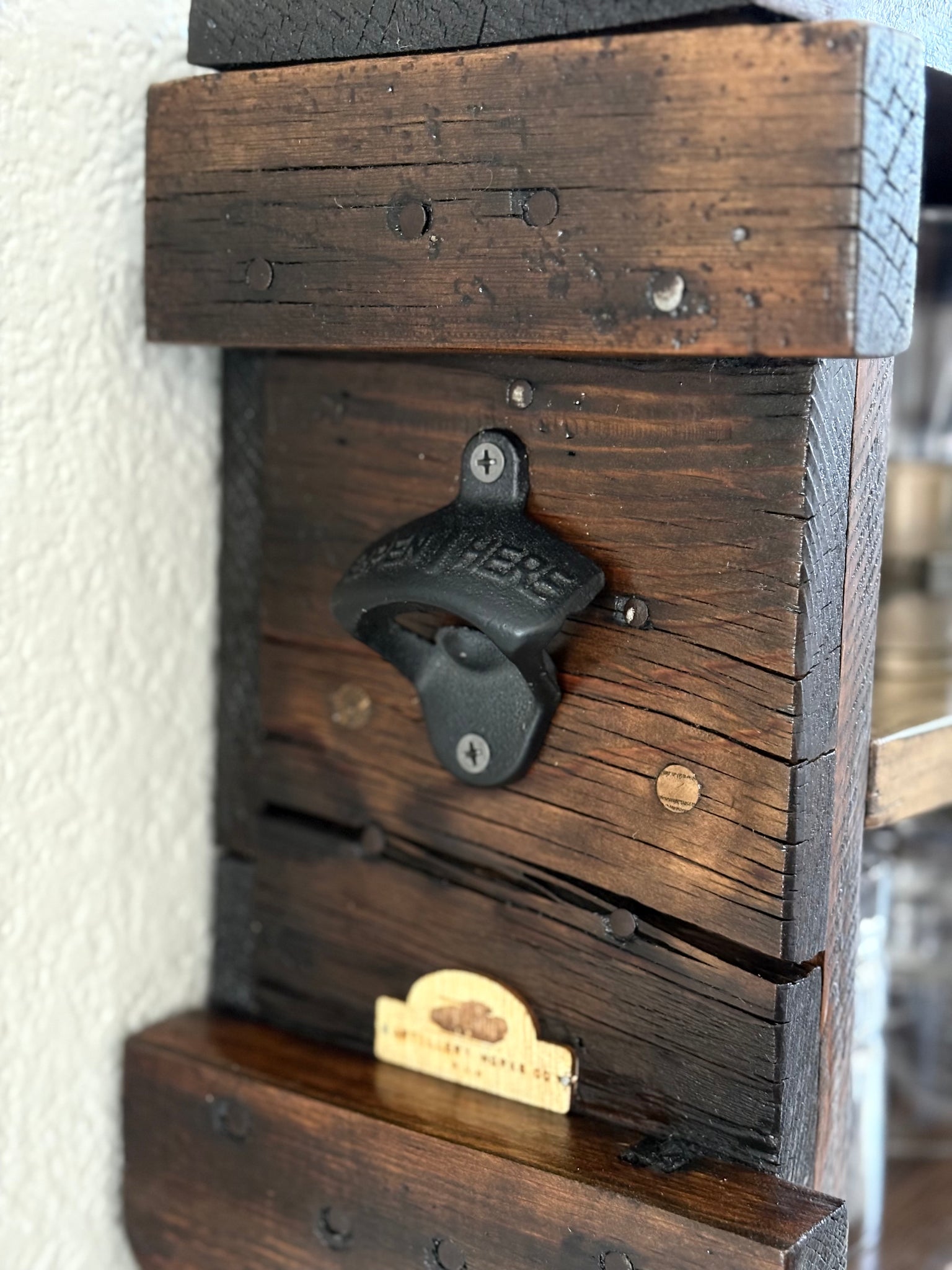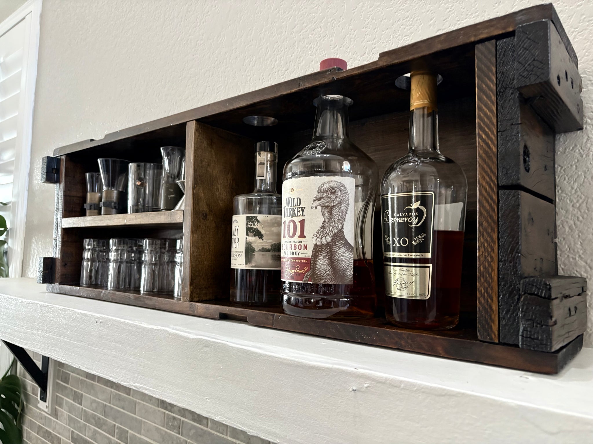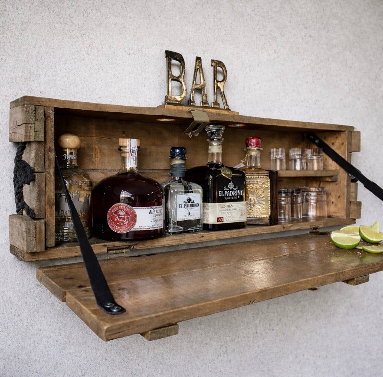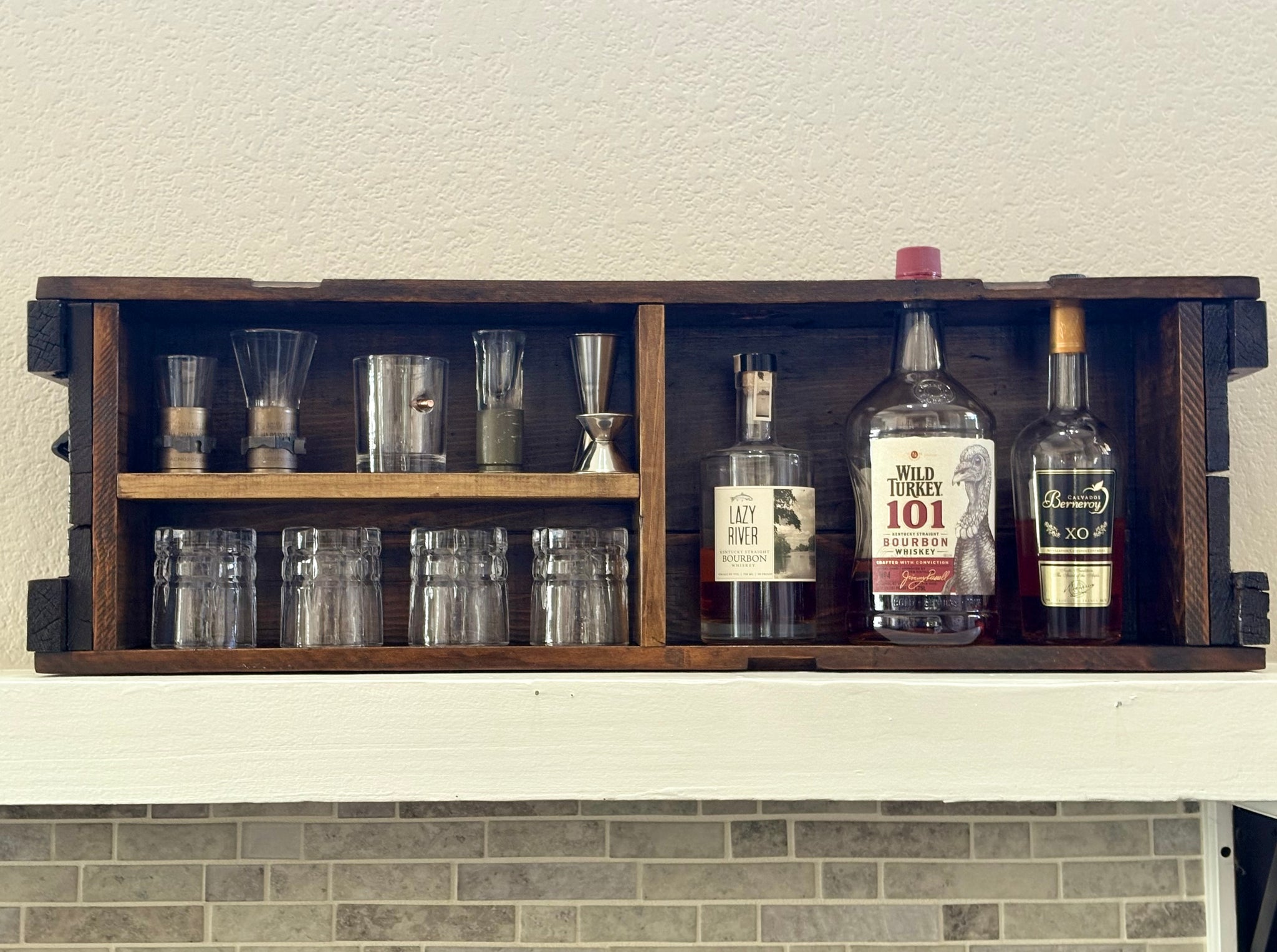 Some of these Howitzer crates have been designed as a Murphy Bar. The hinged door folds down to offer an additional serving surface. The door has been reinforced with leather straps to add to the already timeless look. This crate can hold several 750ml-1.5 liter bottles, along with a few glasses and more.