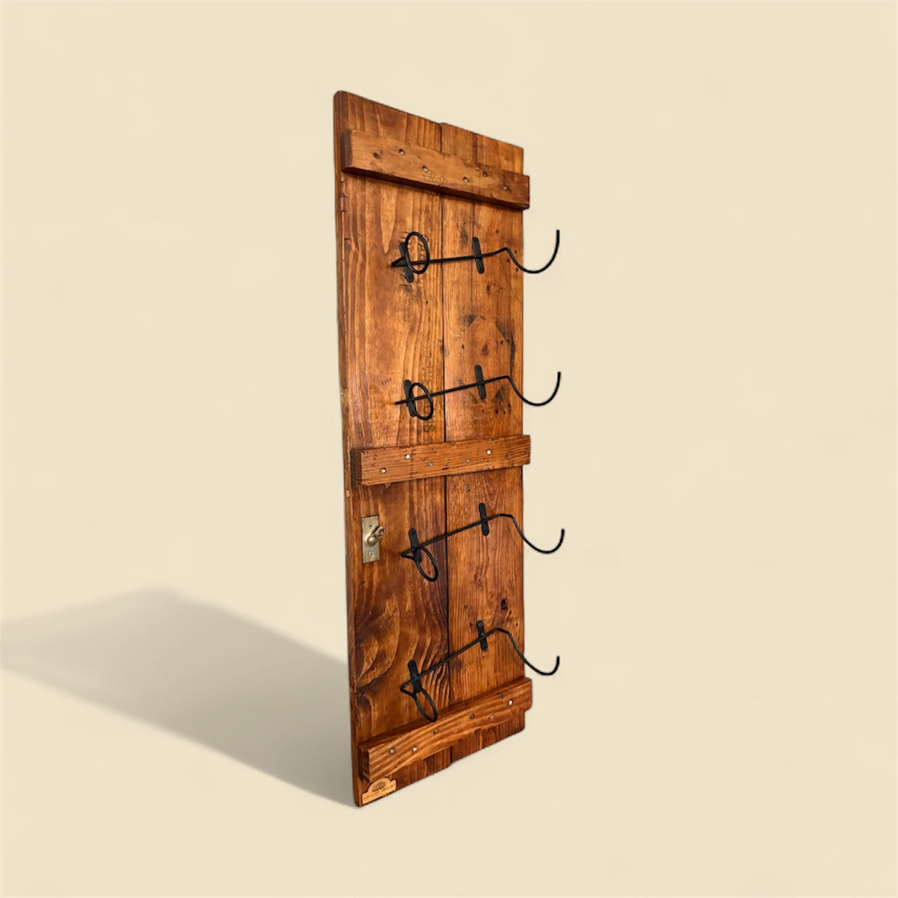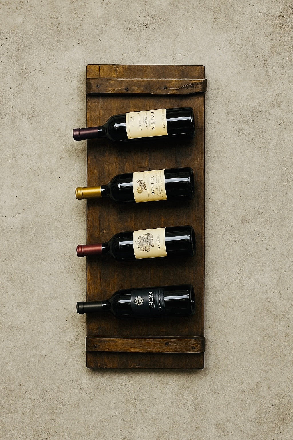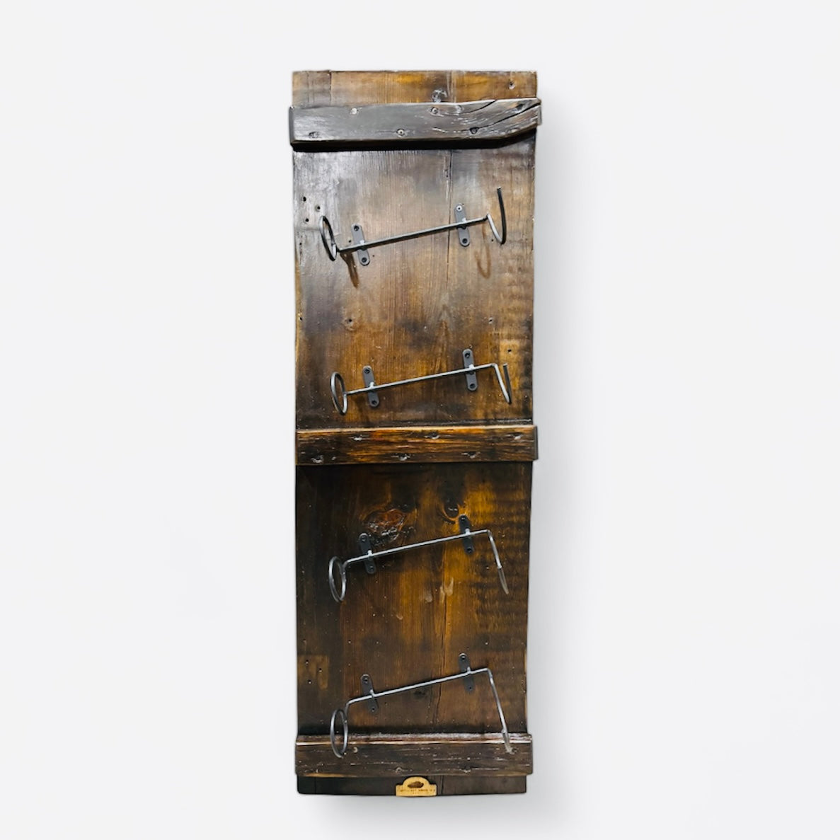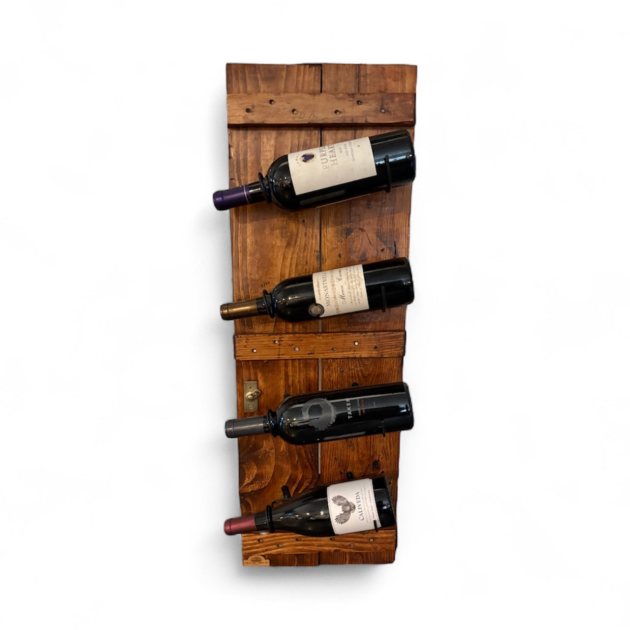 This piece originates from our authentic WWII .50 cal crates. This wine display is designed to house four 750ml bottles.