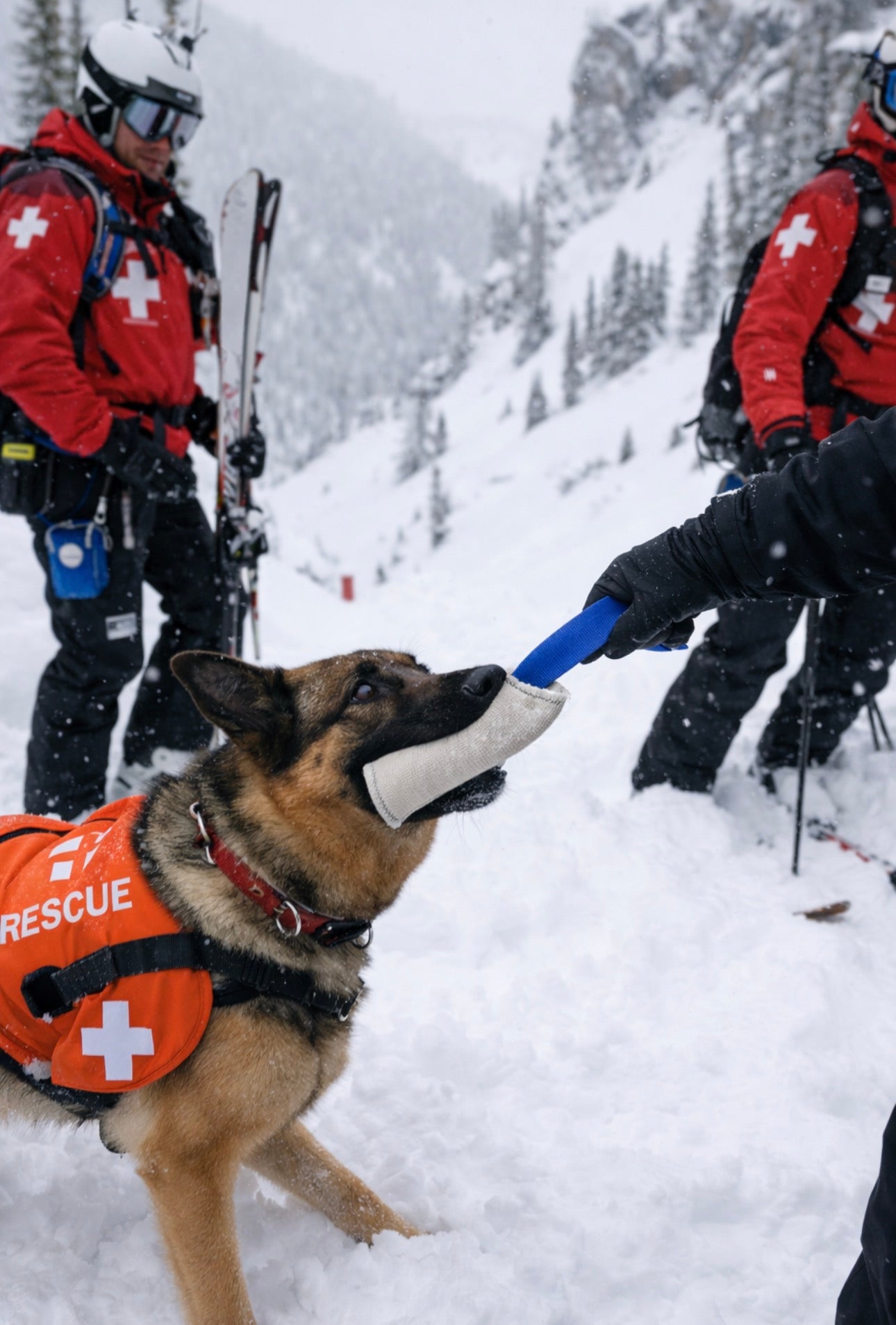 AVY K9 (Avalanche/Backcountry Search & Rescue)-Compact reward tug for Ski Patrol and Backcountry K9 Teams. Produced at the request of local Pow-Mow Patrol Legend and retired Chicago Firefighter Craig K.