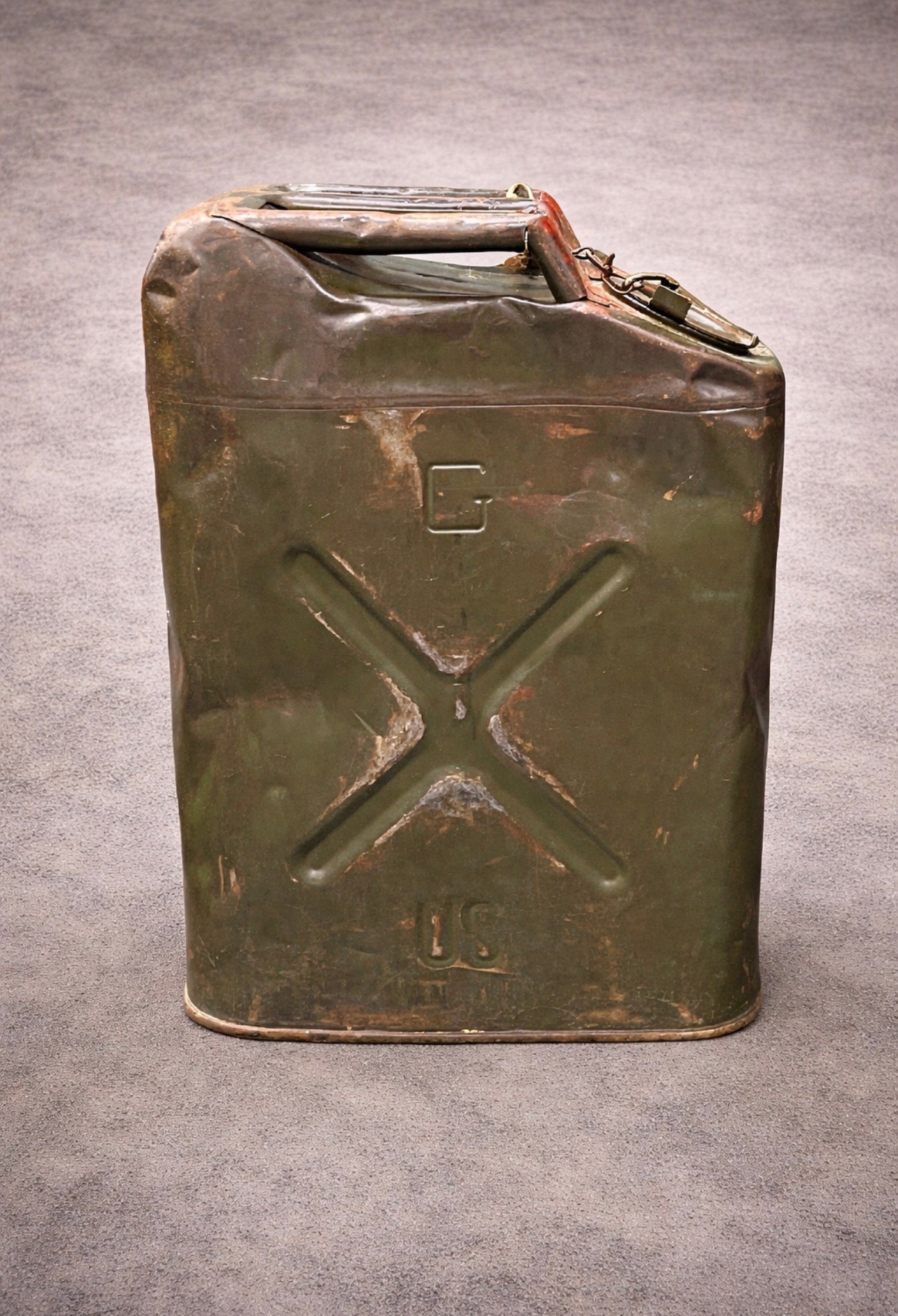 This is a genuine 1979 U.S. Marines Corps. Jerry can used for transporting spare fuel.