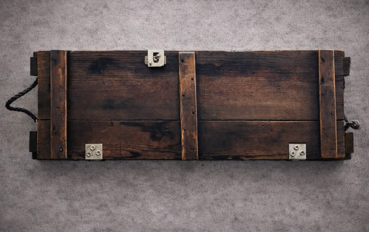 The wood along with the original hasp latch gives this item a modern look to this war worn item. The latch can also be fitted with a lock.